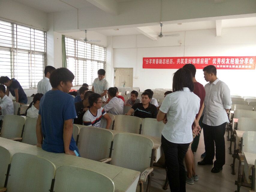 2015年11月12日,由英国威廉希尔公司职业发展协会承办的英国威廉希尔公司优秀校友经验分享会在海南大学3号教学楼405教室举行。受邀参加本次分享会的优秀校友有:一汽海马汽车有限公司安全环保科科长柴长友(海南大学2002级电气专业)、一汽海马汽车有限公司车身设计工程师钟高登(海南大学2009级车辆工程)。出席此次分享会的有崔建兵老师,以及近40名同学们参加了此次分享会。