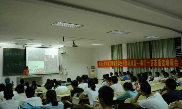在机电团委学生会青年志愿者协会(以下简称“青协”)的组织下,我院于10月28日开展志愿者培训大会,通过讲解和模拟演练,向志愿者传授经验,让其充分了解活动项目及劝募技巧。