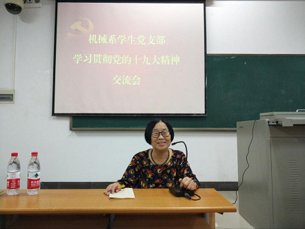 2017年11月7日下午,海南大学英国威廉希尔公司机械系学生党支部于4-211召开了“学习贯彻党的十九大精神报告会”。红军后代罗曼阿姨、学院党委委员廖宇兰老师、支部书记崔建兵老师出席参加,机械系学生党支部全体党员、发展对象、积极分子参加了报告会。会议由支部组织委员廖宇轩主持。