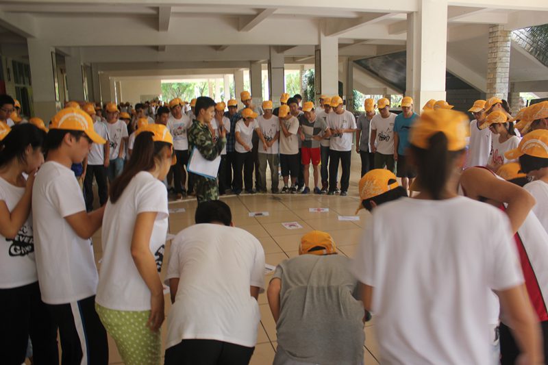 为了能够让本次拓展活动更加专业化,我院特地从校外请来专业的教练员石俊对全体学生干部展开素质拓展训练。石教练慷慨激昂的开场白感染了每一位学生干部,让大家深深感受到自己做的远远不够,教练最后以一句“完美团队,海大机电!”点燃了每个人的激情,一天的活动拉开了序幕。在教练分好组后,同学们开始了自己的队伍建造,包括队长、队秘、队名、队歌、队旗、队训的确立和展示,同学们的创新思维与团结协作的精神在第一环节就展露无遗。接下来的训练中,队长带领着各队队员完成了“解手结”、“坐膝盖”、“排数字”、“齐眉棍”、“驿站传书”、“高空飞蛋”等一系列训练活动。在整个培训过程中,每一位学生干部都积极的配合,绞尽脑汁地想办法为自己的团队加分,游戏增添了团队成员的友谊并加强了团队的凝聚力。