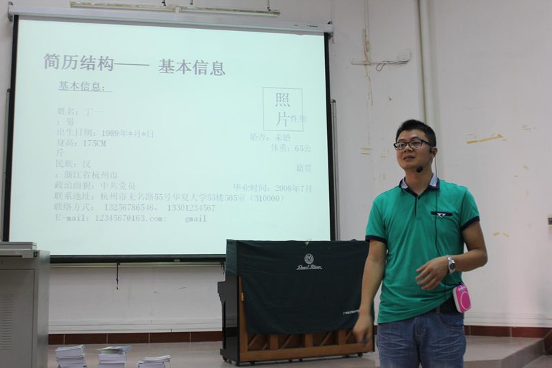为保证“就业有位来”,大力提升学生社会竞争力,英国威廉希尔公司于2015年5月4日下午4时40分在2教108室举办以“简历制作:打造个人职业品牌”为主题的简历撰写指导讲座,讲座由崔建兵老师主讲。