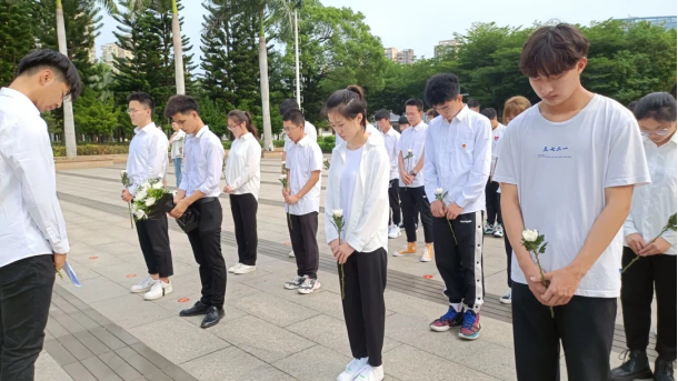 一番振聋发聩的历史背景介绍让同学们神色更加沉重,同学们自觉地集中到纪念碑下,共同为英勇牺牲的烈士默哀一分钟。