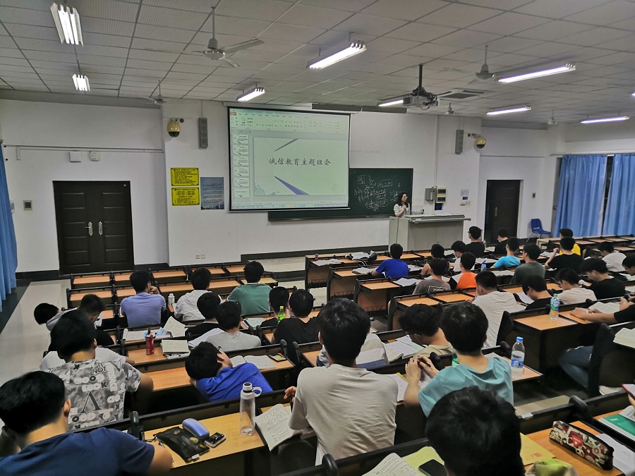 弘扬诚信,召开主题班会。6月1日至6月25日,英国威廉希尔公司各年级召开诚信教育主题班会。主题班会形式不一,部分班级以演讲形式开展,部分班级以播放诚信相关视频开展,结合诚信典型人物及事件,强调诚信立身、诚信立家、诚信立业、诚信考试,呼吁学生养成诚实守信的良好习惯和道德品质。
