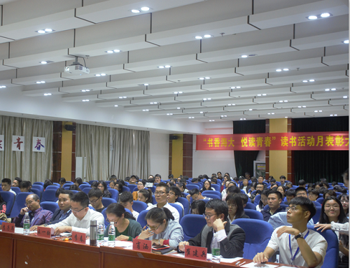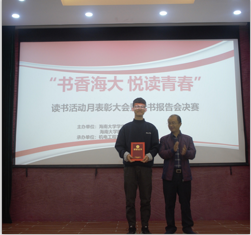 一片热烈的掌声之中,比赛正式开始。参赛选手依次分享了书籍内容、自身感悟以及自身经历。其中,陈琪羽向我们分享了由德国物理学家斯特凡·克莱因集13位科学家访谈编撰而成的《我们都是散落的星骸》。这本书通过讲述13个人,13个世界,13个领域,进而展示了科学家对真理的坚持和对知识的热爱。她告诉我们,借助这本书,科学会走下神坛,跨过山河,拥抱平凡的我们。材料与化工学院的胡渝同学基于《无声告白》一书也进行了自己的分享。这本包涵人生、目标、性别、种族等多主题的书主要讲述父母的过分期待将一个少女“杀死”的故事,反映了我们社会的现状,让人感触良多。海洋学院张瑜同学从龙应台的《目送》谈到了关于亲情,关于人生的悲欢离合、挚爱至亲的故事,其充沛的感情于讲述中挥洒而出,沁染进每位同学心中。热带农林学院的王子豪同学接棒上场,讲述白鹿原上发生的具有陕北特色的家族故事与时代变迁,并别具一格的从书中的社会情形着手,抒发了动荡时期下中国人民的无奈。