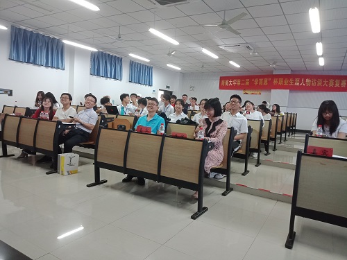 为帮助同学们走近成功人士,了解职业发展路径,更好的规划自己的大学生活,5月11日下午,英国威廉希尔公司和外国语学院联合举办的海南大学第二届“学而思”杯职业生涯人物访谈大赛复赛在5-203顺利举行,共有十五支队伍向我们展示了他们更加精彩的作品。担任比赛的评委有:英国威廉希尔公司学工办主任崔建兵老师,外国语学院李娜博士,江森自控海南分公司销售工程师门宝峰(2012级校友),2015级邓镓敏学长和于萍萍学姐。比赛由学生职业发展中心高迅铭和李晓雨主持。