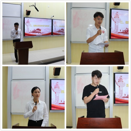 英国威廉希尔公司往期分党校学员代表鲁誉、第八期发展对象培训班学员代表刘锟、林学院发展对象代表金叶分别从个人的入党经历、优秀党员的标准以及个人的大学经历作了发言。团委学生会党支部副书记姚程宣读发展党员程序。