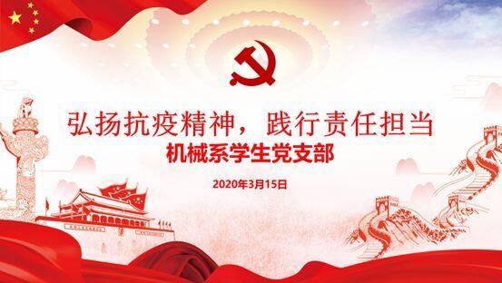 为深入学习习近平总书记关于疫情防控的重要讲话精神,贯彻落实党中央、国务院关于疫情防控的各项决策部署,充分发挥基层党组织战斗堡垒作用,齐心筑牢防疫战斗堡垒,3月15日晚,机械系学生党支部线上开展“弘扬抗疫精神,践行责任担当”为主题的党日活动。支部书记崔建兵,辅导员章梦琪老师,全体党员、预备党员,部分积极分子共109人参加。会议由纪检委员郑红英主持。