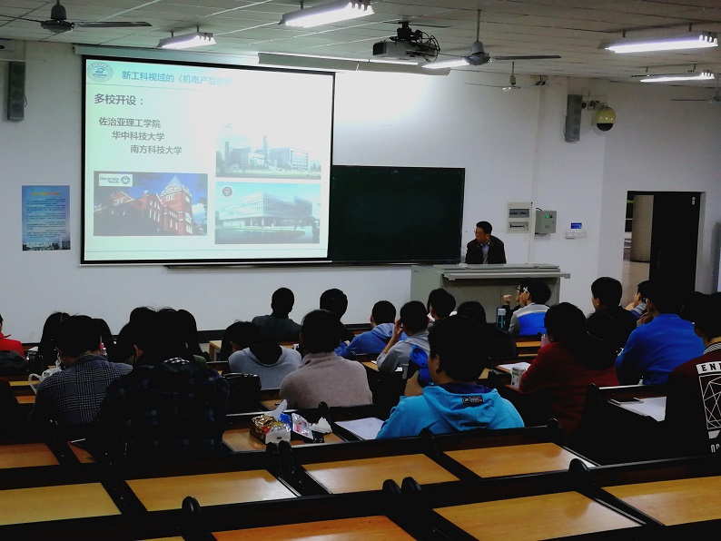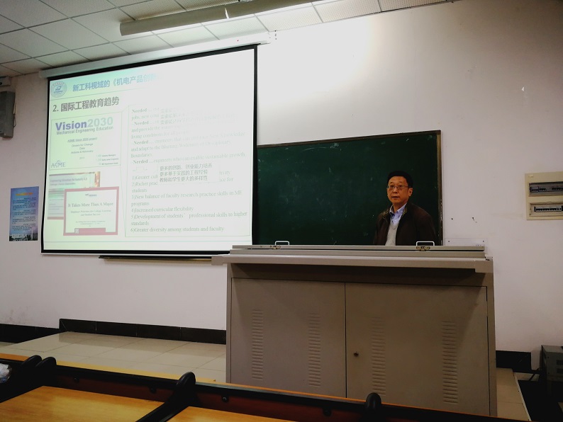 何岭松教授以机电产品为主题,对新工科课程《机电产品创新设计理论与实践》进行了深入浅出地讲解,使同学们对当今新经济、新技术环境下大学生应掌握的机电产品开发知识及工具有所了解。何教授从典型机电产品及其构成、产品创新设计理论、产品设计流程和规划工具、机电产品多领域建模与仿真、小型机电产品的设计与制作实例介绍等五个方面进行授课,配备了大量的机电产品设计实例,内容丰富、风趣幽默,深受同学们的欢迎,同学们都表示获益良多。