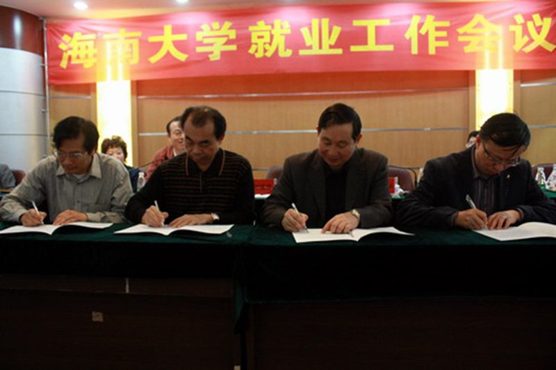 翁绍捷院长和符新书记代表学院与学校领导签订《海南大学2011年毕业生就业工作目标管理责任书》