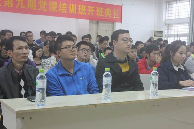 一曲振奋人心的《国际歌》为本次开班典礼拉开了帷幕。崔万春老师对学员们做了动员讲话并提出了几点希望,他指出参加党课培训以及学习党的知识的重要意义;希望学员们树立正确的入党动机;希望学员们珍惜本次学习机会并在以后的学习和生活中认真学习党的理论知识,增强心中的自豪感与民族责任感。接着,总结了学院一年来的学生威廉希尔中文网站,对党员发展情况进行了通报,宣读了参加宣誓的新接收预备党员名单。全体预备党员持立正姿势,面向党旗,举右手握拳,在领誓人王寅老师的带领下庄严宣誓,誓为共产主义奋斗终身。随后,2012级正式党员谢东原作为代表发言,总结两年来自提交申请书到成为正式党员的感悟与收获,并对新一届入党积极分子寄予厚望。2014级入党积极分子洪锦文作为代表发言,表达了本期全体学员严格遵守党课纪律,认真学习党的知识,接受党的教育的决心。黄国标书记在最后对新加入的优秀学员表示热烈的祝贺,并向同学们介绍了学院党委的工作要求及安排,希望能够帮助积极分子各方面得到收获和提高,达到党员的标准与要求。