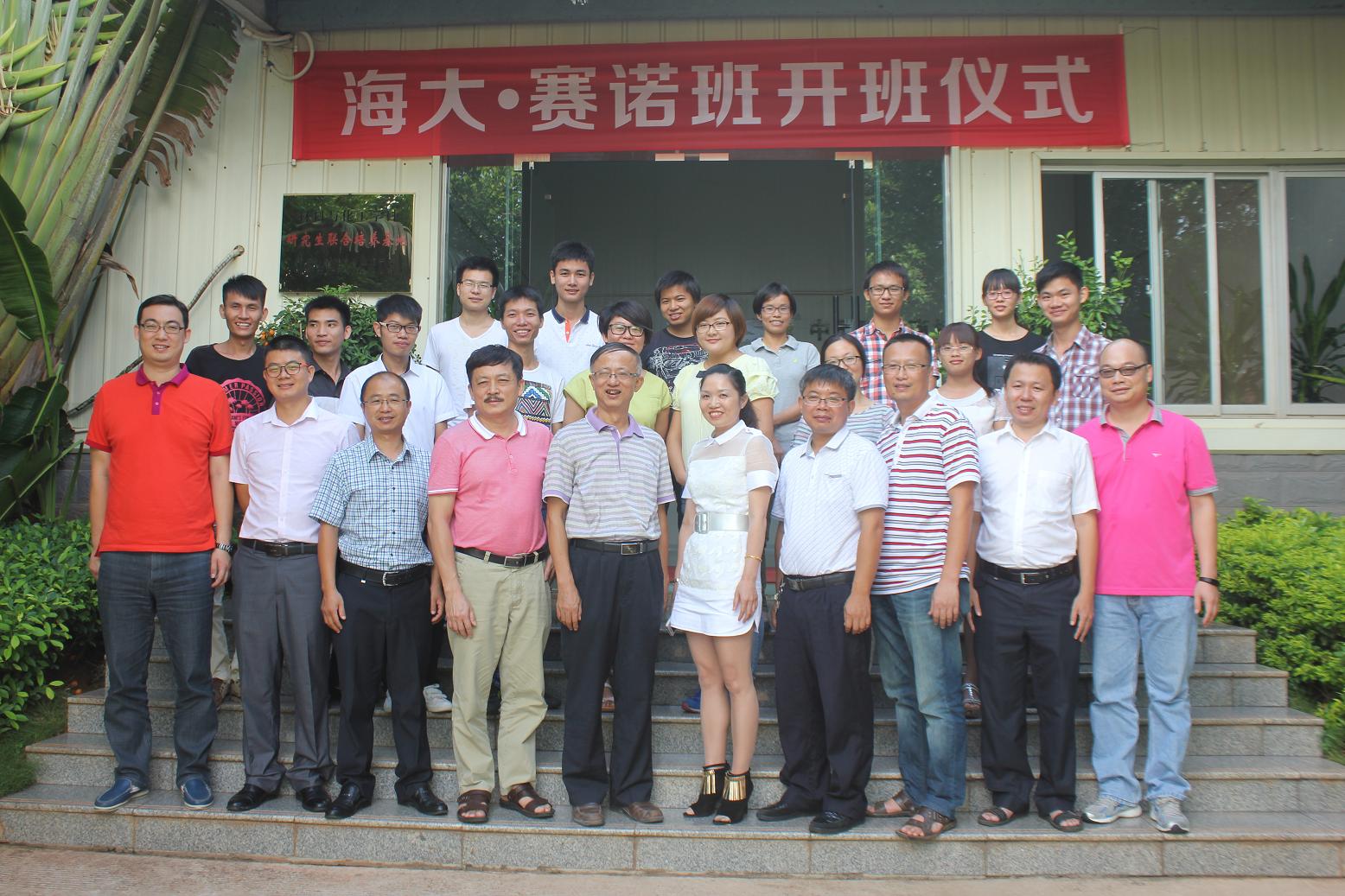 9月23日下午,海南大学英国威廉希尔公司等学院与海南赛诺国际有限公司合办的“海大赛诺班”开班仪式在赛诺公司隆重举行。英国威廉希尔公司院长翁绍捷、党委副书记李宏、材料与化工学院党委副书记胡先文、赛诺公司总裁助理胡连芹、赛诺公司各部门高管、英国威廉希尔公司学工办老师,以及第二届海大赛诺班全体学生参加了本次活动。