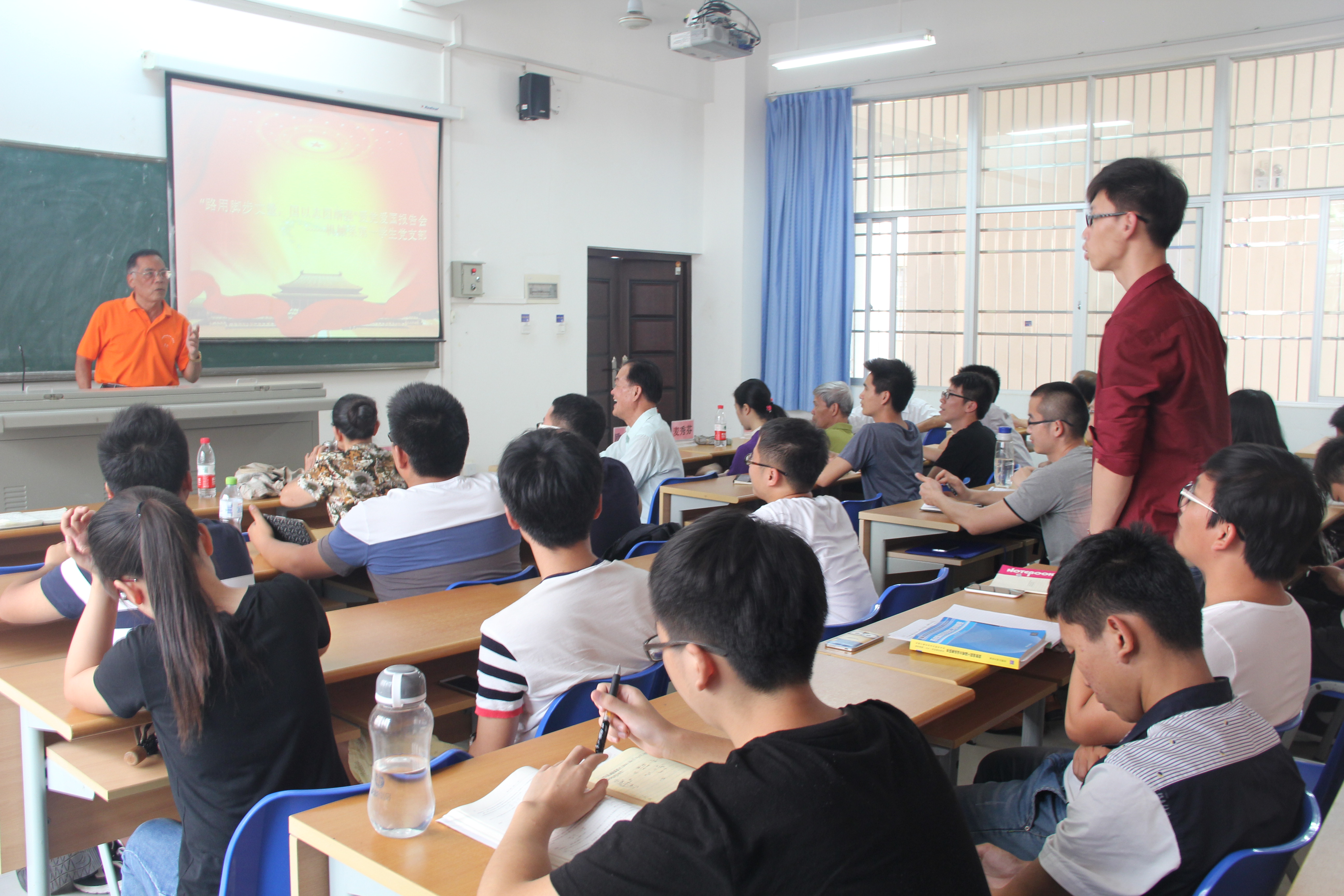 活动开始后,主持人首先邀请程老师为大家做主题报告。程老简明扼要地为大家讲述了党的发展史,祖国的近代屈辱史,深刻表明了党领导中国人民走向繁荣富强、实现中华民族伟大复兴的历史必然性,使我们更加深刻的了解党史、国史,增强我们分辨是非的能力,从而紧跟党的步伐,为实现中华民族伟大复兴而不懈努力。随后,进入师生互动环节,杨云山老师与同学们互动发言,就腐败问题的根源与大家进行了探讨和交流,告诫我们党员同志要多了解学习党史、国史,这样才能真正的了解我们的党和国家,从而坚定理想信念,抵挡住“糖衣炮弹”的诱惑,做一名合格的中共党员。陈传汉老师也劝导大家多读书,多向我们党组织的榜样同志学习,从而提升我们的思想道德境界,完善我们的人格品质。活动中,李贺、朱凯峰等同学就家乡变化和其它问题向老师积极分享、询问和探讨,老师也一一给出了详细深刻的回答。活动最后,李宏副书记对程儒参、杨云山等老师的到来表示衷心的感谢,赞誉几位老师退休后仍然心系海大学生发展的敬业精神,更希望在身体条件允许的条件下,今后能邀请几位老师到我院做报告,与同学交流学习。