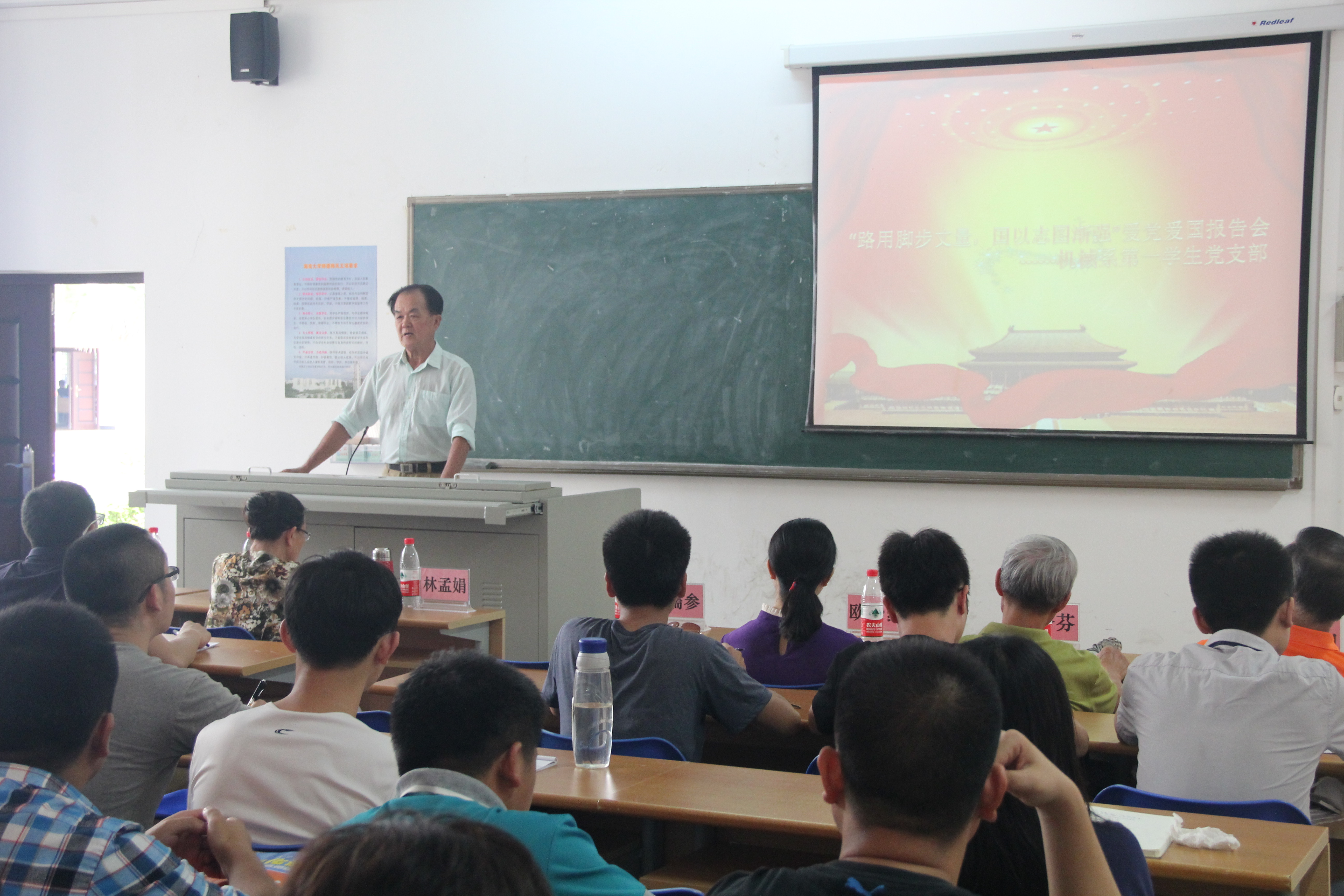 为了积极响应党中央“学党章党规、学系列讲话,做合格党员”的“两学一做”学习教育号召,加强学生党员的党性修养建设。英国威廉希尔公司机械系第一学生党支部于四月十五日下午在4-109隆重举行主题为“路用脚步丈量,国以志图渐强”的爱党爱国报告会,出席报告会的有海南大学关工委、党史国史宣讲团成员程儒参、杨云山、陈传汉、麦秀芬、林孟娟老师,英国威廉希尔公司党委李宏副书记,信息科学与技术学院党委会秘书欧少红,机械系第一学生党支部书记崔建兵,参支部党员、入党积极分子约40人参加本次活动。报告会由宣传委员金杯主持。