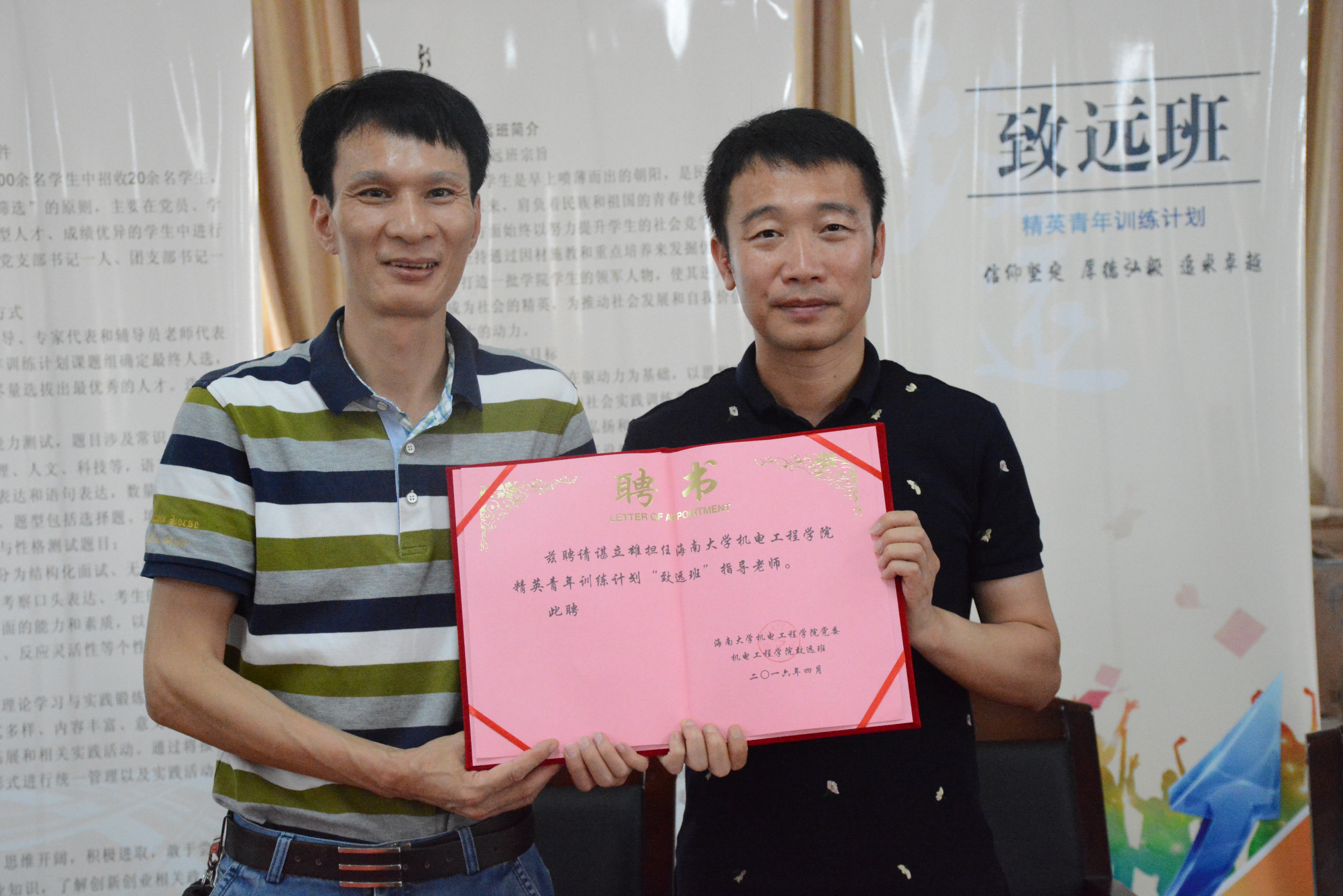 在讲座中,谌立雄师兄结合自身经历,从生活的苟且,诗意的理想和远方的愿景三个方面与同学们分享自己的创业历程。在讲座中,谌立雄师兄首先向同学们讲述了在创业过程中的困苦与艰辛,希望同学们能够加强个人修养,以强大的内心态度直面生活的困难;随后,他还向同学们讲述了在创业途中的乐趣和在拼搏过程中对未来更美好的期许,同时也希望同学们积极培育创业思维,从最朴素的理想开始,一步一步突破自我,实现人生理想。本次讲座中,黄国标书记为谌立雄总经理颁发了“致远班指导老师”聘书。