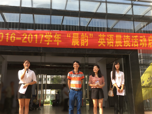 9月25日下午,英国威廉希尔公司2016-2017学年“晨韵”英语晨读动员大会暨启动仪式在理工研发大楼前门大厅启动。学院党委黄国标书记,学工与团委办公室李青、余梦月、印一凡老师,“晨韵”英语角学生干部以及2016级全体新生参加了本次动员大会。