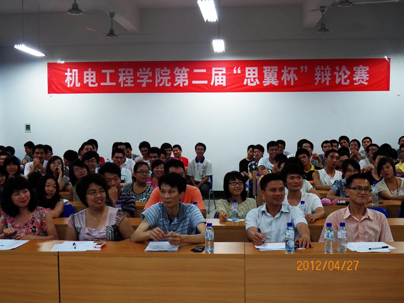 2012年4月27日晚,海南大学英国威廉希尔公司第二届“思翼杯”大学生辩论赛决赛激情上演,比赛由正方电气专业代表队对阵反方机械专业代表队。出席本场比赛的评为有学院党委书记黄国标,学工办主任陈秀妍、团委书记崔万春,辅导员何映敏等。