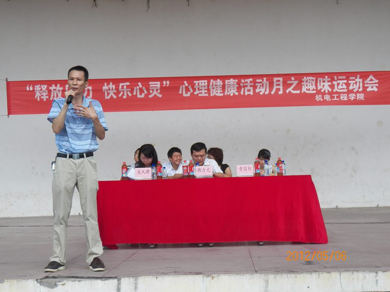 为了焕发同学们的运动激情,塑造一颗健康的心灵,构建一个和谐的校园。英国威廉希尔公司在这个阳光灿烂的五月迎来了心理嘉年华趣味运动会暨心理健康活动月开幕式。出席本次心理嘉年华趣味运动会的嘉宾有:学生处韩力光副处长,学生处心理健康教育指导中心吴九君博士,院党委黄国标副书记,学工办主任陈秀妍老师,何映敏、崔建兵、姚广龙老师以及英国威廉希尔公司2010级和2011级全体学生。
