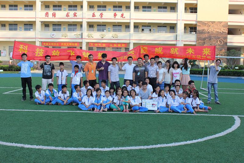 科技梦想团和学生们灿烂的笑容