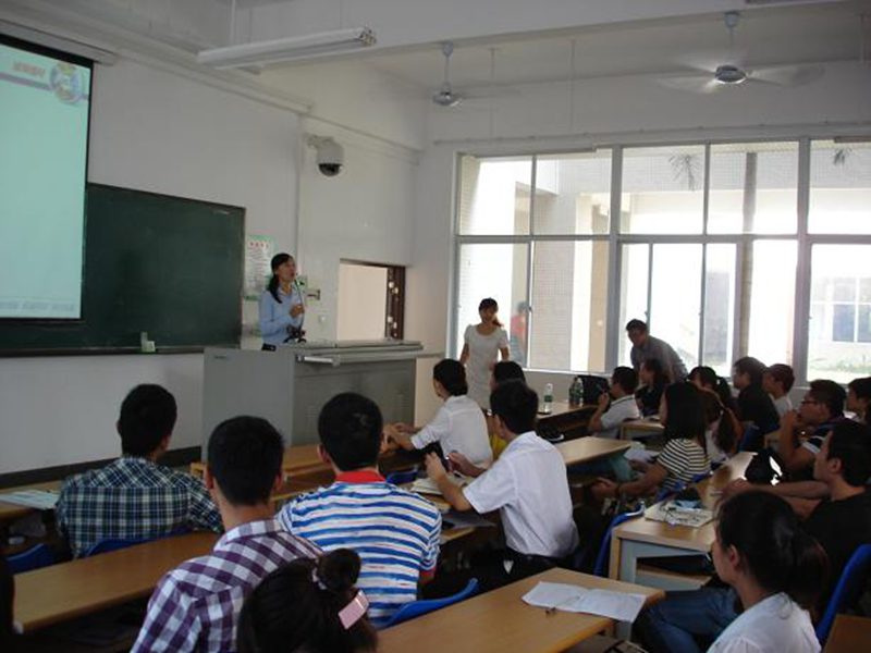 会上先由招聘主任董晓飞播放了金盘电气公司宣传片并对公司概况进行了详细的介绍,而后由人力资源部经理林瑜对公司发展进行了规划报告,接下来由人力资源部总监万总一一回答了同学们的提问。整个教室中座无虚席,宣讲会上同学们全神贯注了解公司的基本情况、薪资待遇、发展空间,并积极地参与相关讨论,整个会场中气氛热烈。最后,公司还安排同学们参加了第一轮笔试。