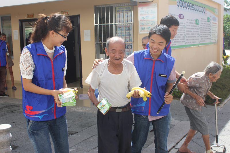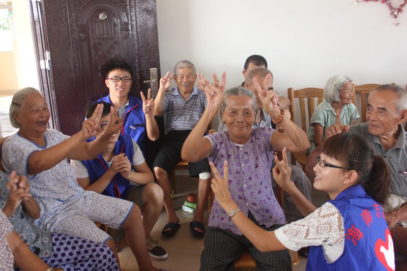 7月15日上午,海南大学英国威廉希尔公司“闪亮青春,阳光扶老”暑期“三下乡”志愿服务队走进海口市大致坡敬老院开展爱心亲情陪护活动。