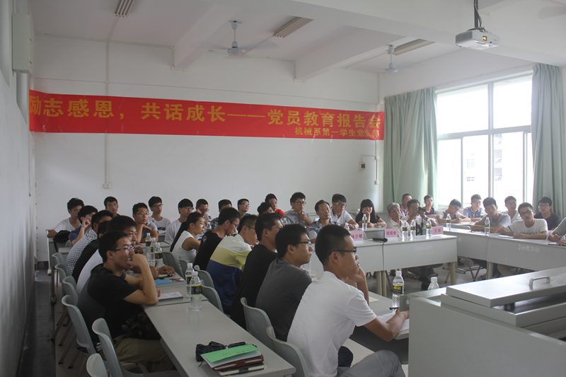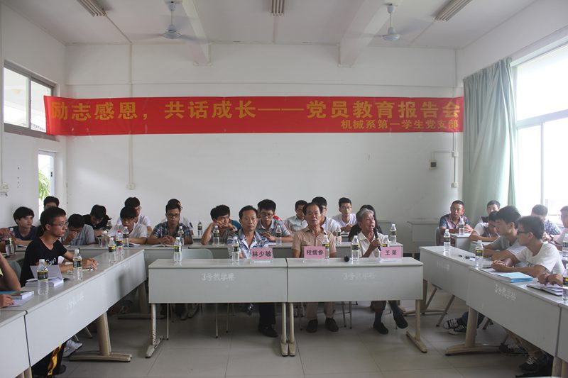 为提高党员自身意志,传播服务他人的理念,激励党员励志感恩,奋发成才,报效祖国的社会责任感,英国威廉希尔公司机械系第一学生党支部于2014年9月21日9:00在三教304教室召开关于“励志感恩,共话成长”党员教育报告会。出席此次报告会的领导和嘉宾有原海南大学统战部部长程儒参教授、原海南大学纪委办公室主任王荣教授、原海南大学统战部副部长林少敏教授、机械系第一学生党支部书记崔建兵老师。支部全体学生党员、预备党员,入党积极分子共计五十多人参加会议。报告由崔建兵老师主持。