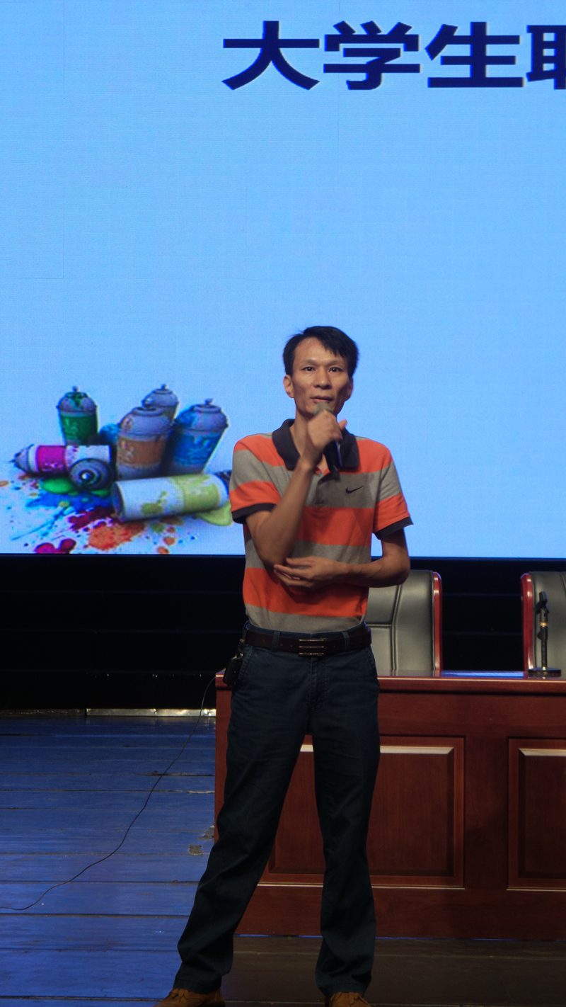 伴随着全场师生热烈的掌声,讲座正式开始。讲座中,邱老师以亲切的口吻表达了自己与同学们就生活以及学习等各方面问题进行探讨与交流的意愿。接着,围绕“大学生职业生涯规划”主题从基本认知、探讨缘由、基本理论、基本过程以及基本方法五个方面进行了全面细致的阐述。他说,大学生应针对自身特点在社会中找到属于自己的正确位置,避免盲目跟风、模糊定位,并就此问题给予多条建议。最后他通过数据展示分析了当前的就业形势,强调提高自身内在素质的必要性。针对就业过程中的常见问题以及误区,他借多项典型事例一一进行了细致的解答。
