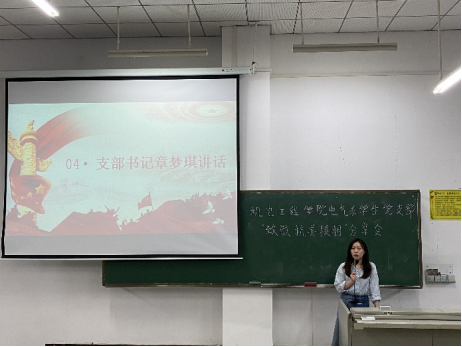 党支部书记章梦琪对本次“抗美援朝“分享会进行总结讲话,要求所有党员、积极分子积极学习红色文化,传承红色精神,并对全体积极分子提出希望,希望积极分子积极向党组织靠拢,增强自身党性修养。